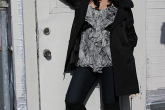 Black Trench, Black Cardigan, Elephant Bracelet, Cocktail Ring Forever 21 | Black and White Silk Passport Top Diane Von Furstenberg | Dark Wash Jeggings 7 for All Mankind | Black Thigh High Boots Nine West | Black Sunglasses Coach Lovely day, and I almost felt like wearing a really thick coat over everything. Layering was a good idea since it was cold in the morning, but warmed up […]